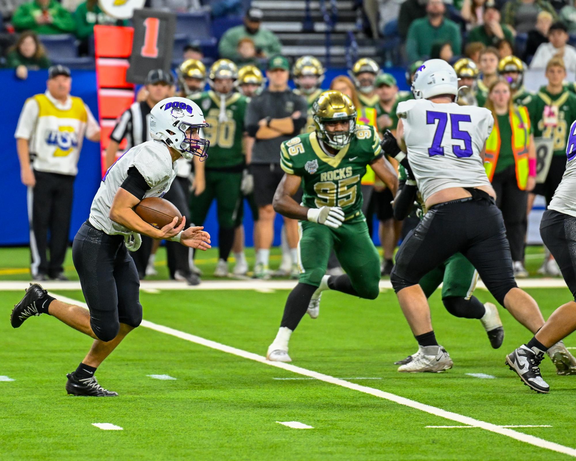 A failed fourth-down conversion attempt by Brownsburg at the Westfield 24-yard line turned the ball over with a five-point lead and 1:45 remaining in the game. From the Bulldog 32-yard line, Shamrock senior quarterback Carsen Melvin launched the final play of the game, a pass to the front of the end zone, that was intercepted by junior Drew Bostic.