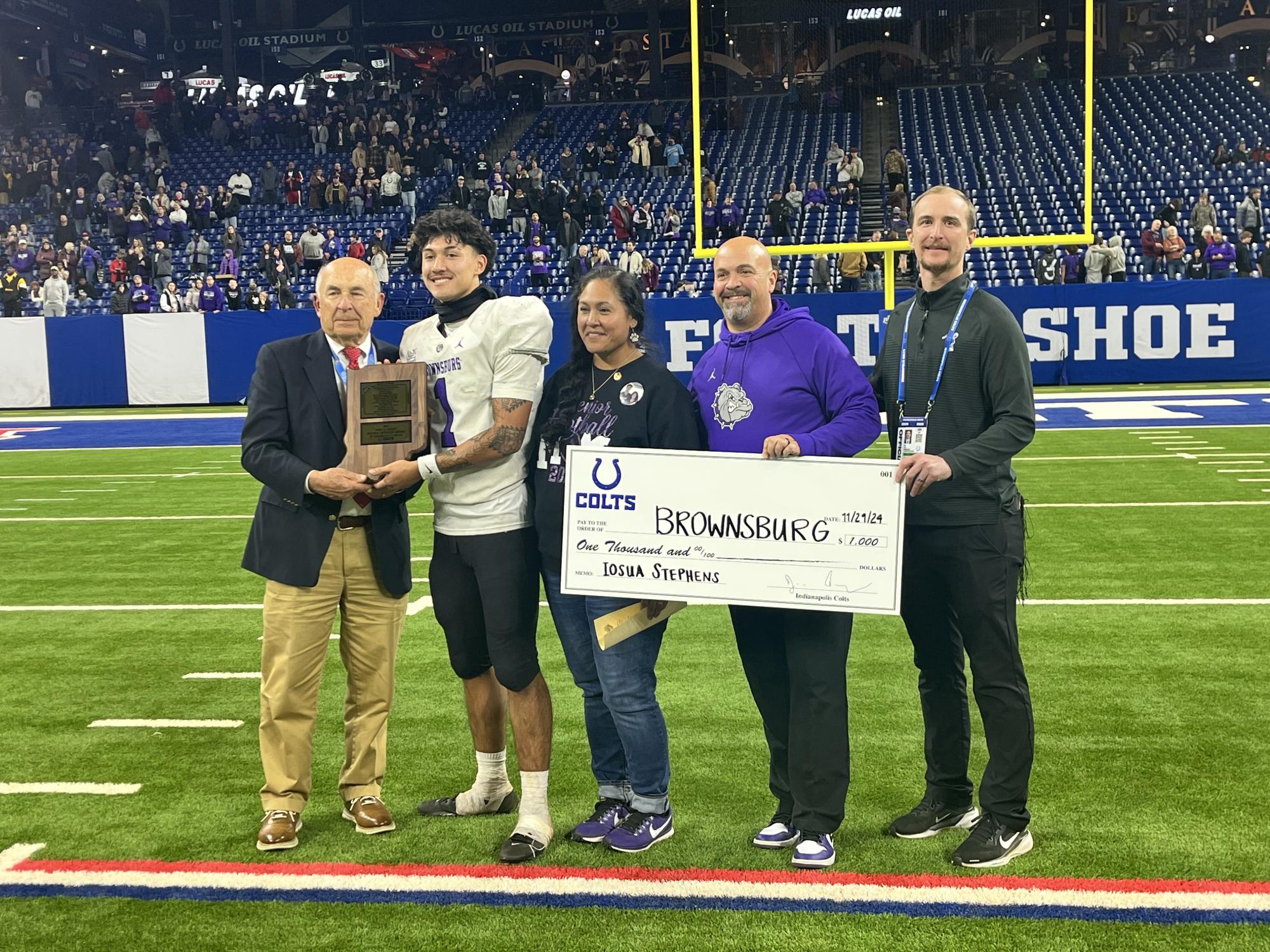 The Indianapolis Colts, the presenting sponsor of the state tournament, presented a $1,000 scholarship to Brownsburg High School’s general scholarship fund in the name of Iosua Stephens.
