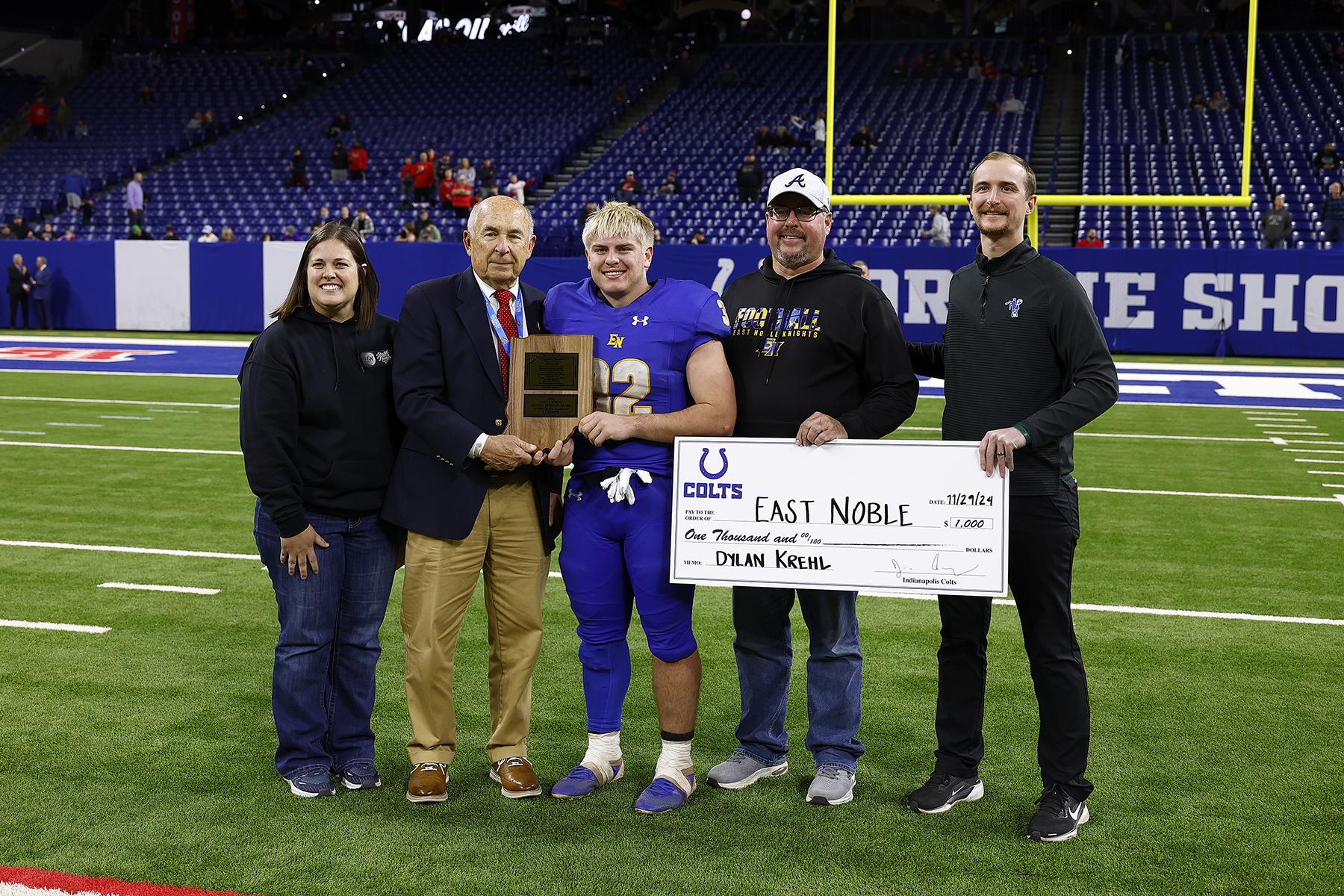 The Indianapolis Colts, the presenting sponsor of the state tournament, presented a $1,000 scholarship to East Noble High School’s general scholarship fund in the name of Dylan Krehl.
