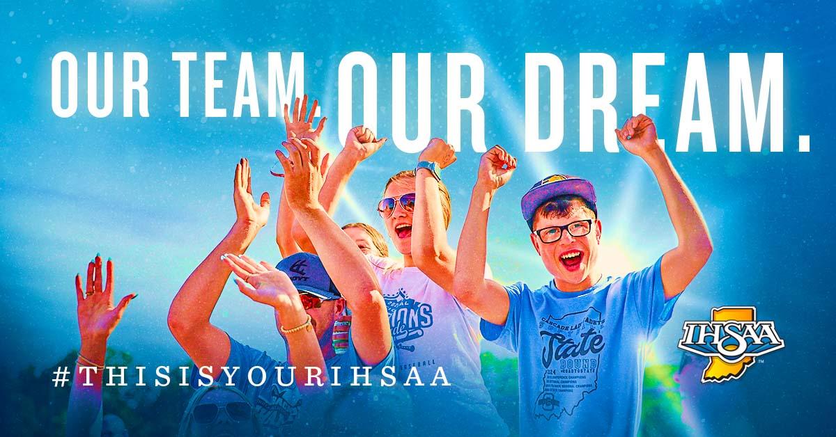 Breadcrumb Home Our Team. Our Dream. Our Team. Our Dream. April 9 , 2025 This is OUR team. We ALL champion it. We ALL invest in it. It represents ALL of us. Fans, thank you for always showing up to support OUR team. Buy a ticket to our next game and help pack the stands! #ThisIsYourIHSAA Post to Twitter Post to Facebook Feel the Spirit. Be the Spirit. Dec 8, 2025 Share Lessons in Leadership! Dec 1, 2025 Share Preparation is everything! Dec 1, 2025 Share Championship Ready! Nov 26, 2025 Share Are You Ready For It?! Nov 26, 2025 Share We’re thankful for our FANS! Nov 25, 2025 Share Won’t Back Down! Nov 18, 2025 Share Battle Tested! Nov 18, 2025 Share Built to WIN! Nov 18, 2025 Share Give It All You’ve Got! Nov 13, 2025 Share Bring Your A-Game! Nov 10, 2025 Share Bring the Energy! Nov 10, 2025 Share This One Means More! Nov 4, 2025 Share Bring It Home! Nov 4, 2025 Share Take It to the NEXT LEVEL! Nov 4, 2025 Share Can You Feel It? Oct 29, 2025 Share Fright Night Showdown! Oct 29, 2025 Share These moments matter! Oct 28, 2025 Share Win or Go Home! Oct 22, 2025 Share Anything Can Happen TONIGHT! Oct 22, 2025 Share The Football Tournament Is Here! Oct 21, 2025 Share Support the Journey! Oct 14, 2025 Share It’s Tournament Time! Oct 10, 2025 Share Student-Athletes Today. Leaders Tomorrow. Oct 6, 2025 Share Soccer Tournaments Start Today! Oct 3, 2025 Share Tournament Showdown! Oct 2, 2025 Share Give It Up for "The Glue Guy” Sep 29, 2025 Share Development for Life! Sep 22, 2025 Share Sectionals Begin This Week! Sep 16, 2025 Share The Ties That Bind Sep 15, 2025 Share Legacy and Tradition Sep 8, 2025 Share A Greater Purpose! Aug 29, 2025 Share Pure Spirit! Pure Sport! Aug 25, 2025 Share Feel the Difference! Aug 18, 2025 Share We Are One! Jun 12, 2025 Share We’re All in This Together! Jun 12, 2025 Share We Love Our Coaches! Jun 4, 2025 Share Boys Golf Sectionals Start This Week! May 30, 2025 Share Support the Second Classroom! May 29, 2025 Share Baseball & Softball Sectionals Begin! May 26, 2025 Share A Community That Cares! May 21, 2025 Share Sectionals Are Here! May 19, 2025 Share We Need You! May 12, 2025 Share Sectionals Start This Week! May 9, 2025 Share Teaching Life Lessons! May 5, 2025 Share This Is a Special Place! Apr 29, 2025 Share Shaping Student-Athletes as People! Apr 21, 2025 Share Feel The Love! Apr 3, 2025 Share Become an IHSAA Official! Mar 19, 2025 Share Sectionals Are Here! Feb 25, 2025 Share 4 quarters. 2 teams. 1 champion! Feb 24, 2025 Share The Action Begins! Feb 14, 2025 Share It’s Sectionals Time! Feb 4, 2025 Share Camaraderie and Community! Jan 29, 2025 Share Don’t Miss Sectionals! Jan 28, 2025 Share Pride and Passion! Jan 22, 2025 Share This Is Character! Jan 14, 2025 Share Preparing for Life! Jan 7, 2025 Share Sectionals Start TONIGHT! Jan 2, 2025 Share Be a Part of the Team! Dec 31, 2024 Share This Is Commitment! Dec 18, 2024 Share These are the moments WE LIVE FOR! Nov 25, 2024 Share We’re thankful for the STATE FINALS! Nov 25, 2024 Share State Finals kick off TODAY! Nov 25, 2024 Share Become an IHSAA Official Nov 21, 2024 Share It’s Time to BATTLE IT OUT! Nov 19, 2024 Share Support our team at SEMI-STATES! Nov 19, 2024 Share Give it ALL you’ve got! Nov 19, 2024 Share Ready for REGIONALS? Nov 8, 2024 Share We need YOU! Nov 8, 2024 Share Who will ADVANCE? Nov 8, 2024 Share Take it to the NEXT LEVEL! Nov 1, 2024 Share Who will be VICTORIOUS? Nov 1, 2024 Share Witness Sectional HISTORY! Nov 1, 2024 Share SCREAM for our team! Oct 29, 2024 Share Are you READY FOR IT?! Oct 29, 2024 Share Help our school ADVANCE! Oct 28, 2024 Share Friday night lights are CALLING! Oct 23, 2024 Share Sectionals begin TONIGHT! Oct 23, 2024 Share Football Sectionals kick off FRIDAY! Oct 22, 2024 Share We Need Your Support! Oct 8, 2024 Share Soccer Sectionals Start Today! Oct 4, 2024 Share Show up for Fall Tournaments! Sep 26, 2024 Share Community Is at the Center! Sep 19, 2024 Share Show up and Show Out! Sep 19, 2024 Share Champion High School Sports! Sep 16, 2024 Share Sectionals Start This Week! Sep 13, 2024 Share Home Sweet Home Team! Sep 5, 2024 Share Coaches Care! Sep 4, 2024 Share Who Do You Play For? Sep 4, 2024 Share Class Is in Session! Sep 3, 2024 Share For the Love of the Game! Aug 21, 2024 Share Feel the Difference! Aug 19, 2024 Share We BELIEVE! Jun 10, 2024 Share High School Sports Are Action-Packed! Jun 6, 2024 Share Your Support Is Priceless! May 30, 2024 Share Let's Show Up! May 23, 2024 Share YOU are a CHAMPION! May 16, 2024 Share Cheer Us On! May 9, 2024 Share Let’s Get LOUD! May 2, 2024 Share Affordable Family Fun! Apr 25, 2024 Share Attend a Game! Apr 18, 2024 Share We need YOU! Apr 11, 2024 Share You Are a Champion Jan 25, 2024 Share Be a Champion Jan 18, 2024 Share It’s Different in Indiana Jan 11, 2024 Share Buy a Ticket to See Us Compete! Jan 4, 2024 Share This Is Worth Supporting Dec 28, 2023 Share Who will be the CHAMPIONS? Nov 25, 2023 Share State Finals kick off TODAY! Nov 24, 2023 Share State Finals are THIS WEEKEND! Nov 22, 2023 Share TONIGHT is the night! Nov 17, 2023 Share We need YOUR SUPPORT! Nov 16, 2023 Share Semi-State victory is SWEET! Nov 15, 2023 Share Ready for a REGIONAL RUMBLE? Nov 10, 2023 Share Help us ADVANCE! Nov 9, 2023 Share Let's get ROWDY! Nov 8, 2023 Share Sectional CHAMPS will be CROWNED! Nov 3, 2023 Share Don’t miss FRIDAY NIGHT LIGHTS! Nov 2, 2023 Share The QUEST only gets TOUGHER! Nov 1, 2023 Share One chance for VICTORY! Oct 27, 2023 Share Got your Sectional Football tickets? Oct 26, 2023 Share Make some NOISE! Oct 25, 2023 Share Sectionals start TONIGHT! Oct 20, 2023 Share Support your school TOMORROW! Oct 19, 2023 Share Sectional football tickets available NOW! Oct 18, 2023 Share This Is School Spirit Oct 12, 2023 Share These Are OUR Kids! Oct 5, 2023 Share Come See Our Future Leaders! Sep 28, 2023 Share Witness Our Greatness! Sep 21, 2023 Share Come Join Us! Sep 14, 2023 Share Get Your Ticket to the Second Cl