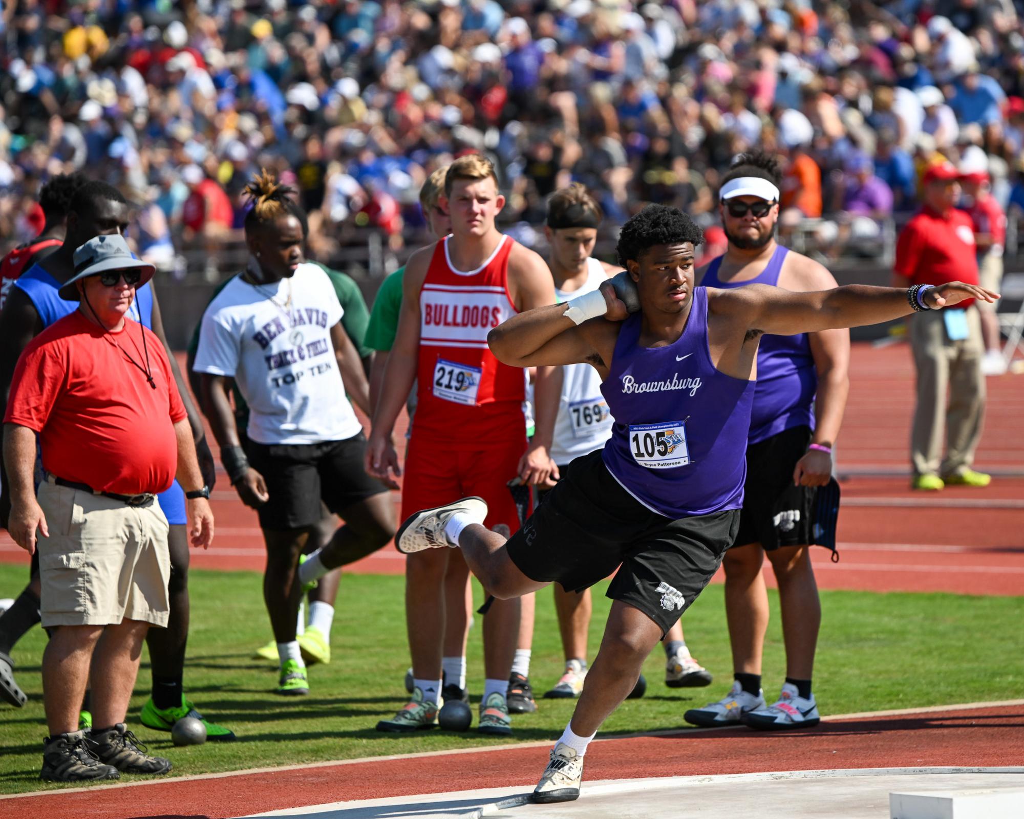 >> Himes, a Heritage Christian junior, threw 65-1.5 on his final attempt in the shot put to extend his lead. His season best of 67-10 is tops in the nation. He conceded it was difficult managing a day of heat, humidity, and 12 throws covering shot and discus. “I had one of those spray bottles with the fan on it. That saved me,” Himes said.