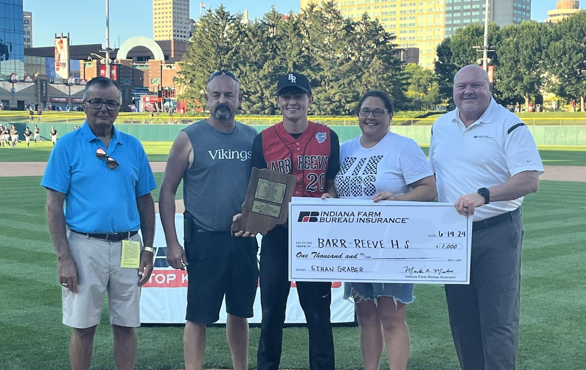 Indiana Farm Bureau Insurance, IHSAA corporate partner, presented a $1,000 scholarship to Barr-Reeve High School in the name of Ethan Graber.