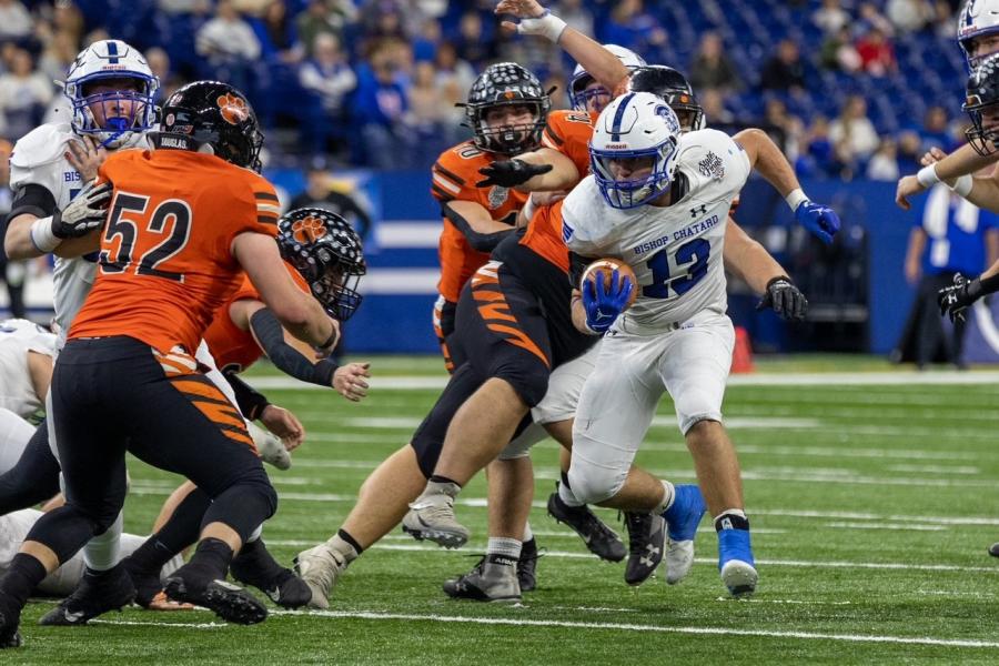 Kinnett rushed for a 9-yard touchdown against Brebeuf Jesuit the last time Bishop Chatard took the field. His third rushing touchdown inside Lucas Oil Stadium this season finalized the margin, 34-14, with 6:07 left in the game. Kinnett ran for a team-best 81 yards on 10 carries, followed by junior Luke Purichia’s 37 yards on 10 carries. Purichia, who separated his shoulder during last week’s 21-3 semi-state championship win over top-ranked West Lafayette, gritted through to compete at state.
