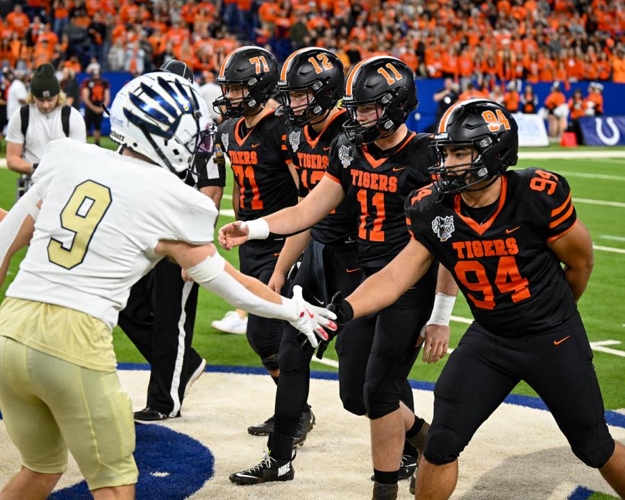 The Tigers, making their first-ever state finals appearance, fought down to the last play -- which turned out to sum up the evening. Sullivan fired a fade pass to the back corner of the end zone, which Carter turned into a one-handed, circus-catch interception.