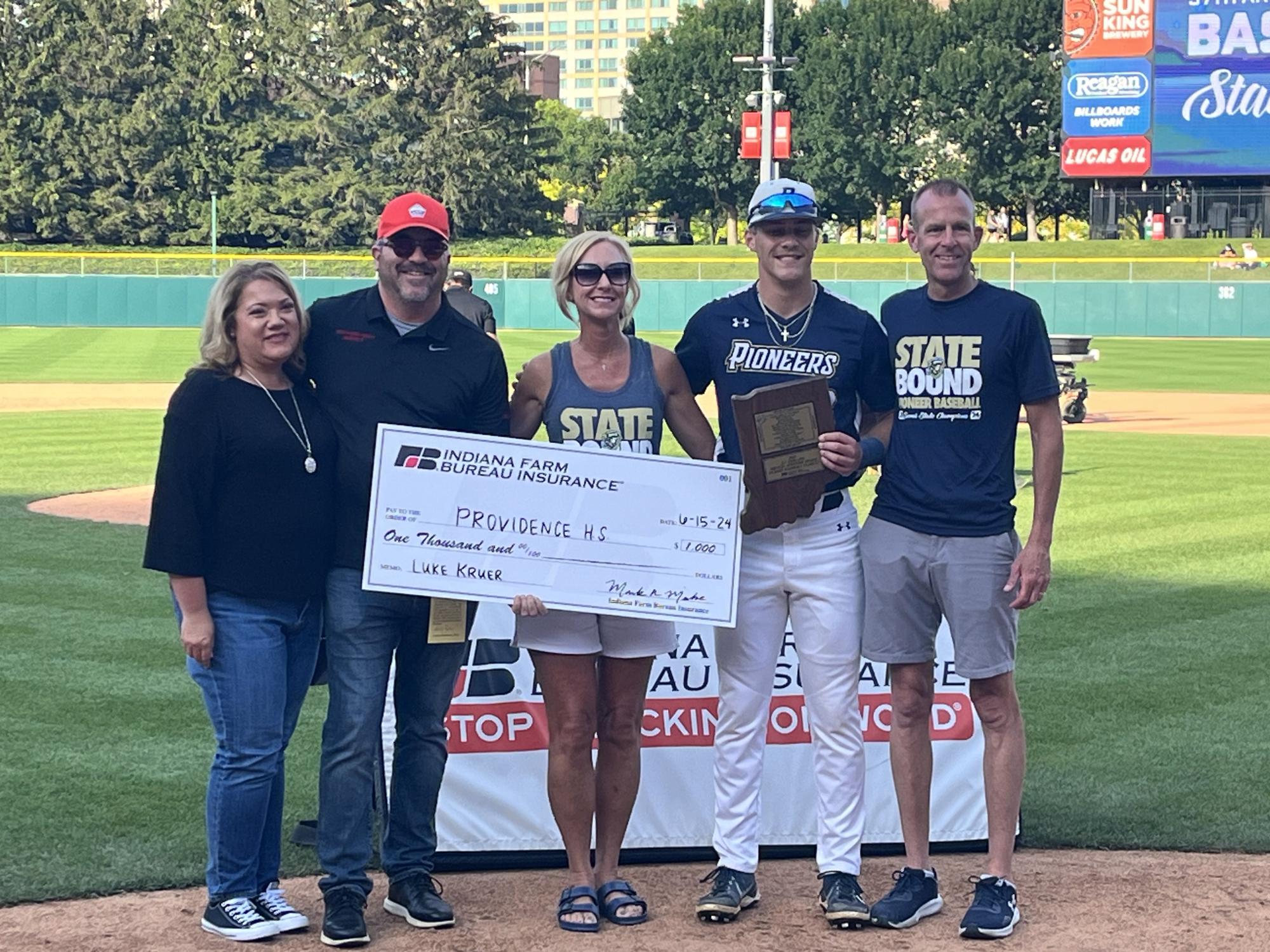 Indiana Farm Bureau Insurance, the IHSAA's corporate partner, presented $1,000 to the general scholarship fund at Our Lady of Providence High School in the name of Luke Kruer.
