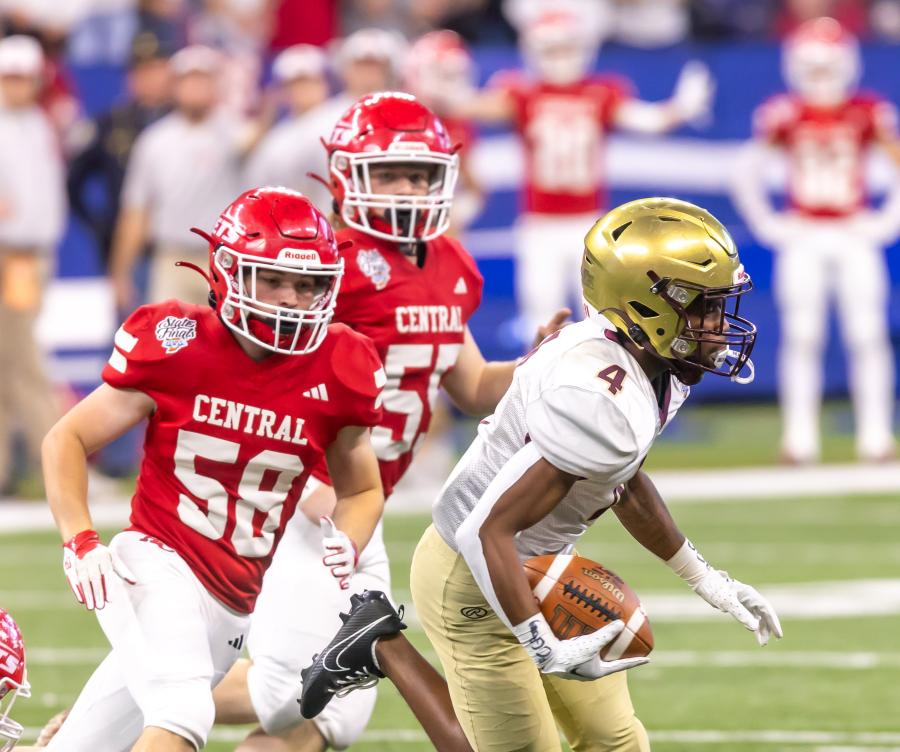 Marking the first time in IHSAA state finals history that two teams have met for the state championship in three consecutive years, Indianapolis Lutheran (13-0) made it a clean sweep against Adams Central, 35-28, while posting its 43rd straight victory – the fourth longest winning streak in state history.