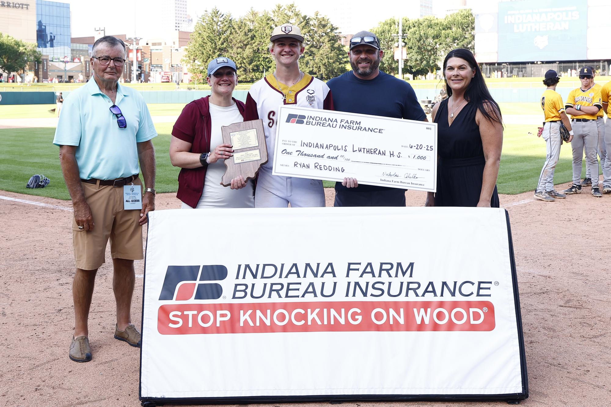 Indiana Farm Bureau Insurance, IHSAA corporate partner, presented a $1,000 scholarship to Indianapolis Lutheran High School in the name of Ryan Redding.