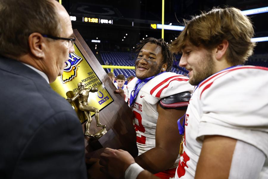 “I’m proud of our kids. I’m proud of our coaches and our community,” said head coach Kyle Ralph, who is 141-12 in 12 years at New Palestine and 4-1 in state title games. “What these boys do is special. It never gets tiring. It is tiring to do this, but you never get tired of winning, especially at this level and at a high level like we have. It’s hard to do. You have to be proud.”