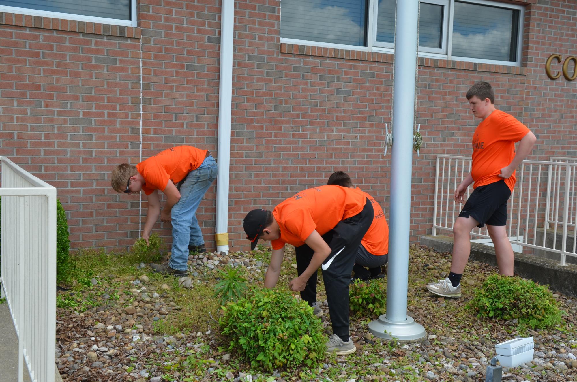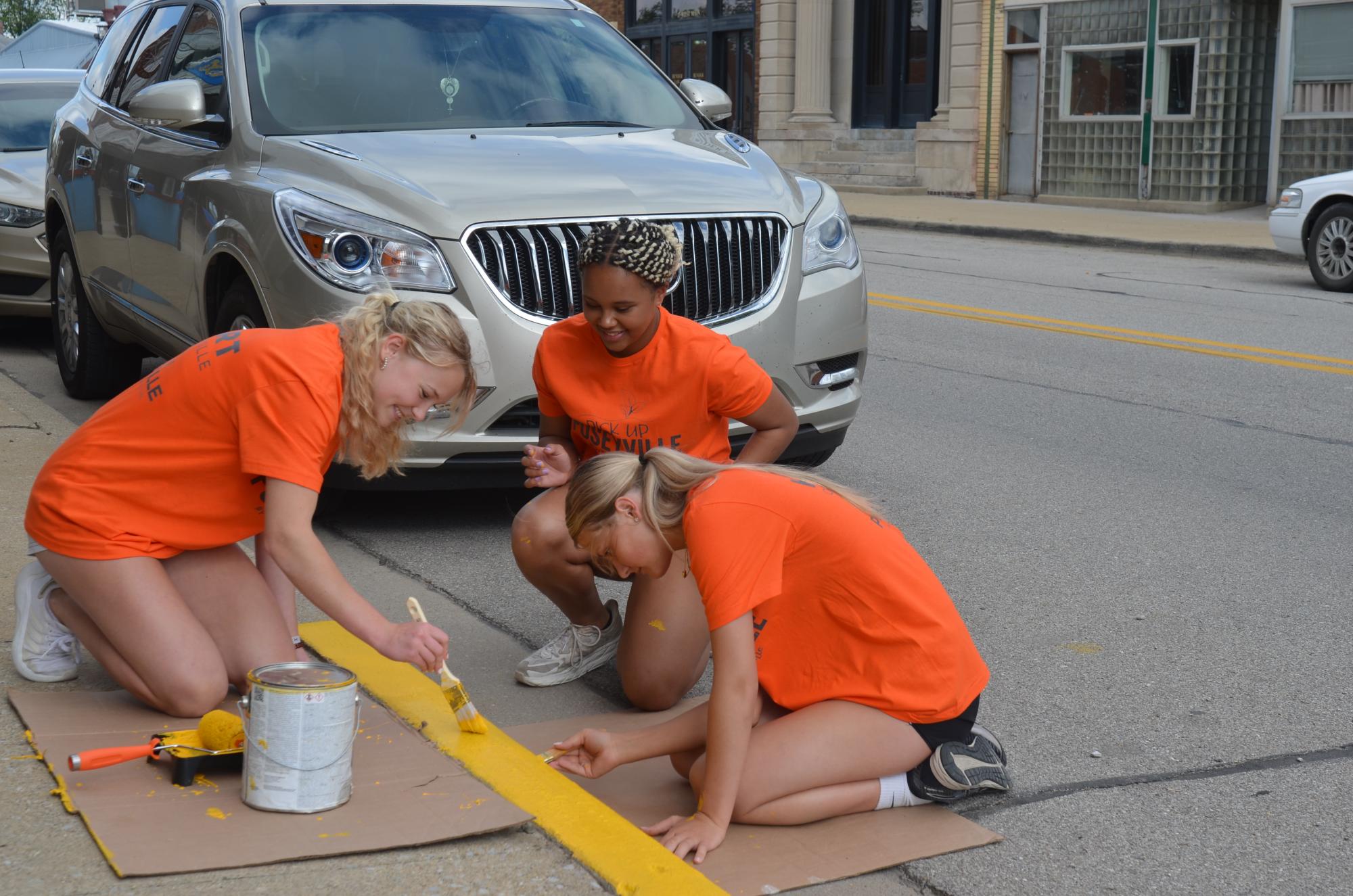 Every spring, the event entitled Pick Up Poseyville invites residents to meet in the morning at the town’s community center. This year 15 adults (community leaders, teachers and coaches) and 45 students (10% of the school's population) spent the day picking up trash, painting whatever requires painting, raking, sweeping and more along the main street corridor.