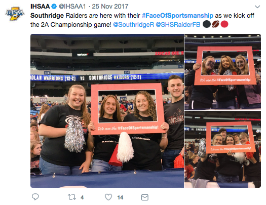 The figures tell a great story—the IHSAA’s social media audiences are at an all-time high with over 113,000 followers on Twitter, 7,800 on Facebook, and 2,500 on Instagram—the largest of any of the 51 state associations. With this high following comes an increased awareness of the #FaceOfSportsmanship conversation online. In 2017, the hashtag #FaceOfSportsmanship garnered over 33 million impressions across all social media platforms.