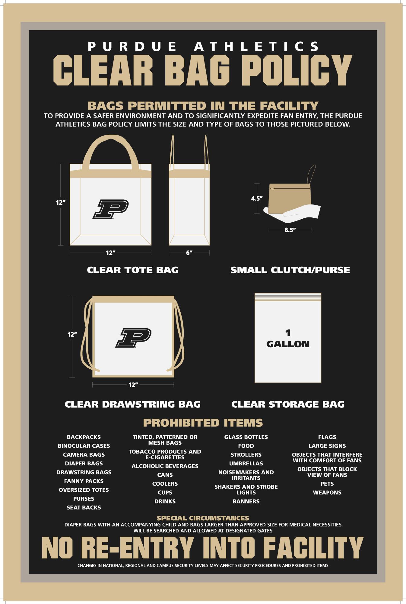 Clear Bag Policy: Please note Purdue University maintains a clear bag policy for entry into Mackey Arena. See the graphic at the bottom of the page.